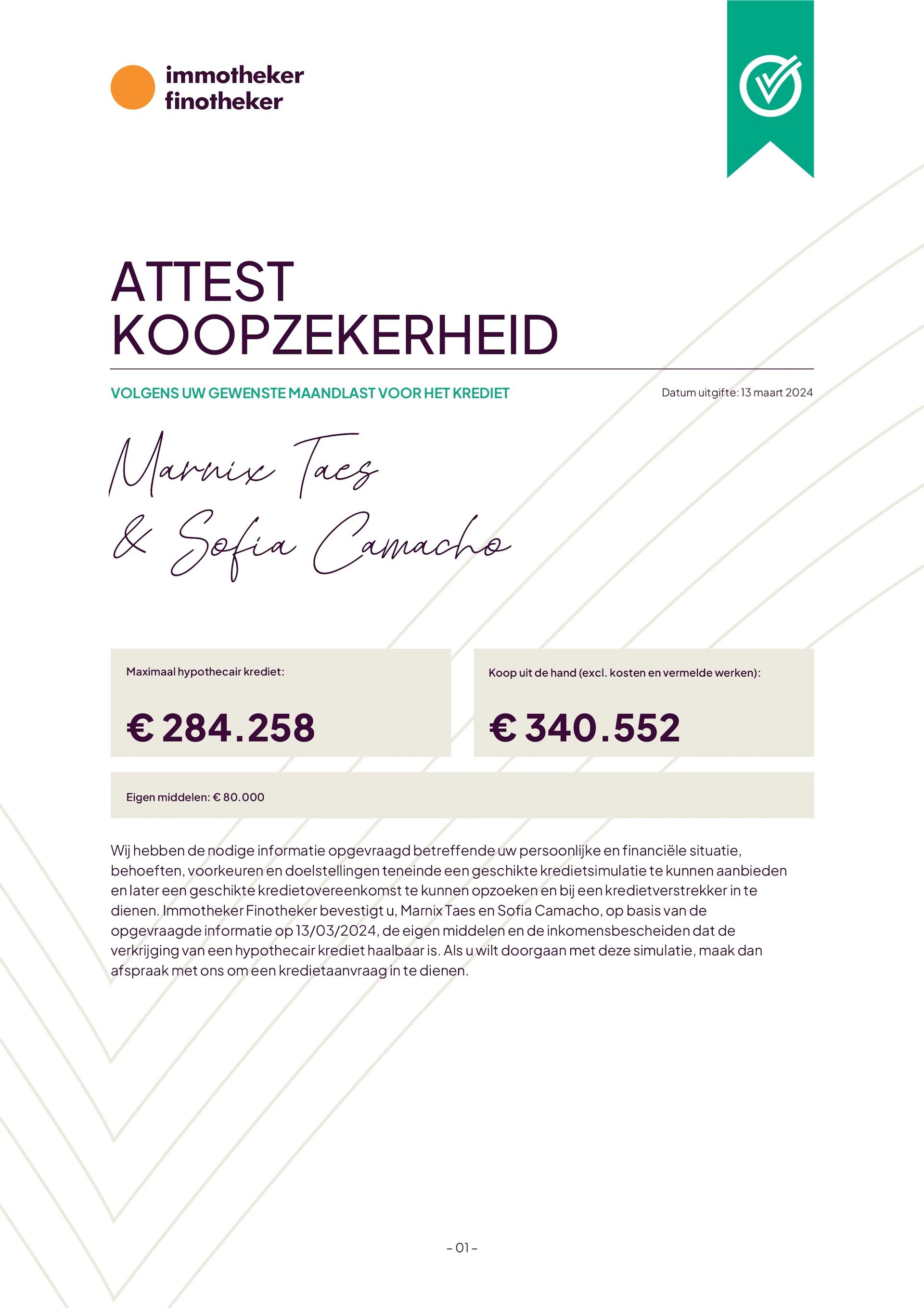 Met het Attest Koopzekerheid van Immotheker Finotheker kun je de verkoper zekerheid bieden en tegelijk goed inschatten of iemand koopzeker is.